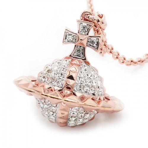 Vivienne Westwood MAYFAIR 3D LARGE ORB PENDANT Necklace Pink Brass