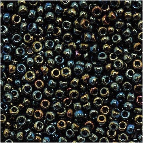 Toho Demi Round Seed Beads, Thin 8/0 (3mm) Size, 7.4 Grams, #84 Metallic Iris Green/Brown