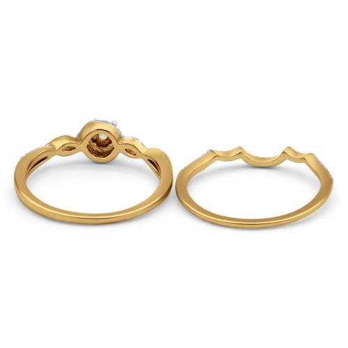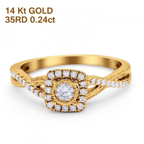 14K Yellow Gold 0.25ct Round 6mm G SI Diamond Engagement Solitaire Bridal Set Wedding Ring Size 6.5