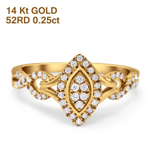 14K Yellow Gold 0.25ct Marquise 11mm G SI Diamond Engagement Wedding Ring Size 6.5