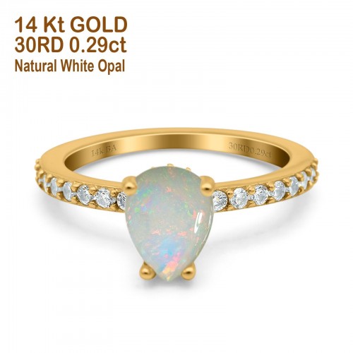 14K Yellow Gold 0.32ct Oval Natural White Opal G SI Diamond Engagement Ring Size 6.5