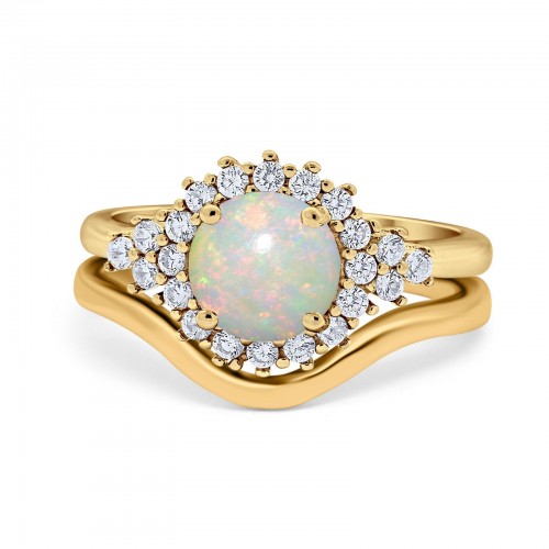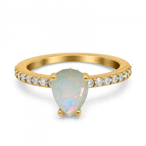 14K Yellow Gold 0.32ct Oval Natural White Opal G SI Diamond Engagement Ring Size 6.5