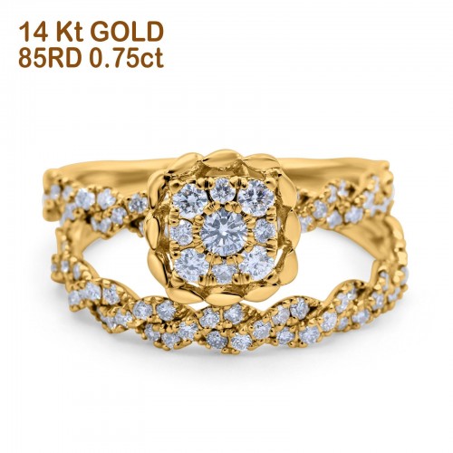 14K Yellow Gold 0.75ct Round 10.8mm G SI Diamond Engagement Bridal Set Wedding Ring Size 6.5