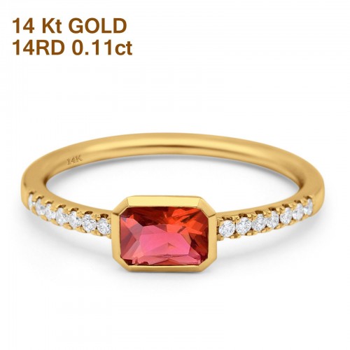 14K Yellow Gold 0.83ct Trendy Emerald Cut Garnet 5.2mm G SI Diamond Engagement Wedding Ring Size 6.5