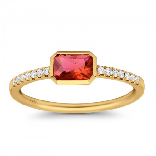 14K Yellow Gold 0.83ct Trendy Emerald Cut Garnet 5.2mm G SI Diamond Engagement Wedding Ring Size 6.5