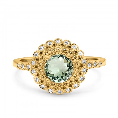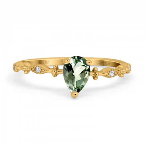 14K Yellow Gold 0.75ct Natural Green Amethyst Pear G SI Diamond Engagement Ring Size 6.5