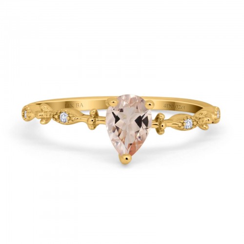 14K Yellow Gold 0.75ct Natural Morganite Pear G SI Diamond Engagement Ring Size 6.5