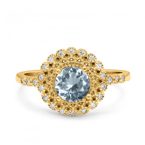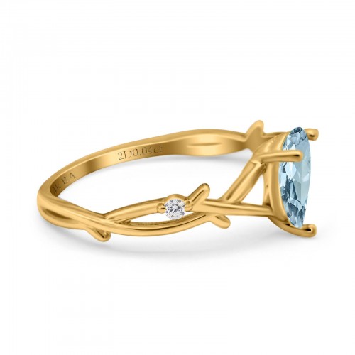 14K Yellow Gold 0.75ct Natural Aquamarine Pear G SI Diamond Engagement Ring Size 6.5