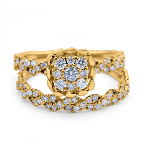 14K Yellow Gold 0.75ct Round 10.8mm G SI Diamond Engagement Bridal Set Wedding Ring Size 6.5