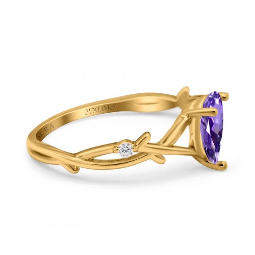 14K Yellow Gold 0.75ct Natural Amethyst Pear G SI Diamond Engagement Ring Size 6.5