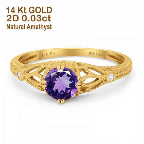 14K Yellow Gold 0.87ct Round Natural Amethyst G SI Diamond Engagement Ring Size 6.5