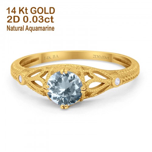 14K Yellow Gold 0.87ct Round Natural Aquamarine G SI Diamond Engagement Ring Size 6.5