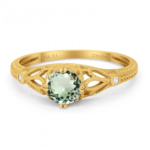 14K Yellow Gold 0.87ct Round Natural Green Amethyst G SI Diamond Engagement Ring Size 6.5