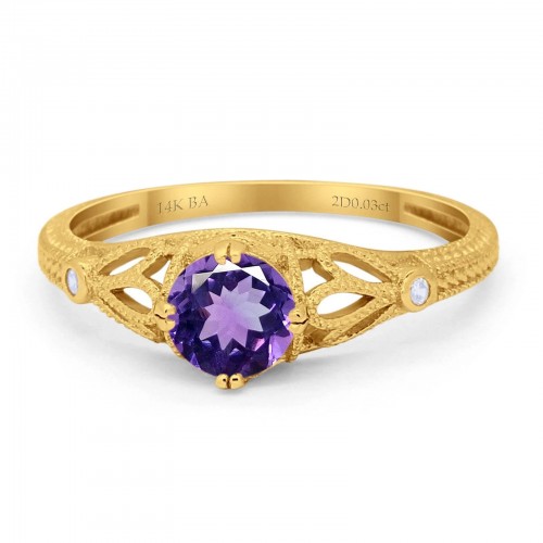 14K Yellow Gold 0.87ct Round Natural Amethyst G SI Diamond Engagement Ring Size 6.5