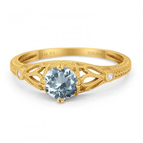 14K Yellow Gold 0.87ct Round Natural Aquamarine G SI Diamond Engagement Ring Size 6.5
