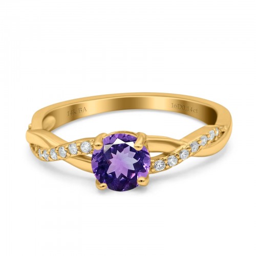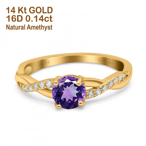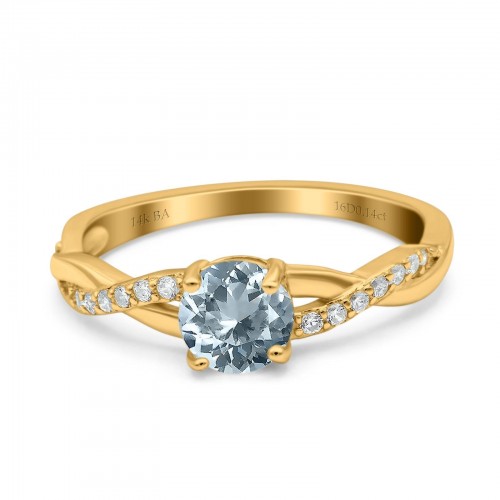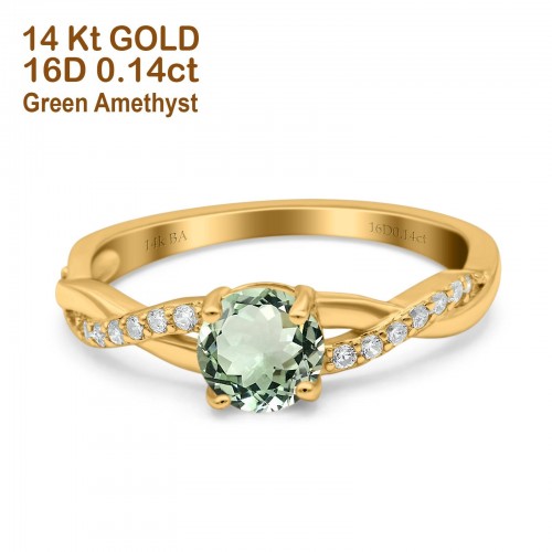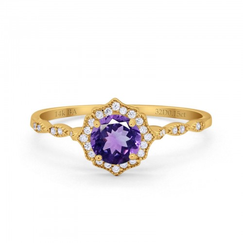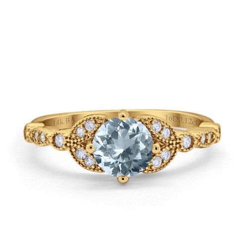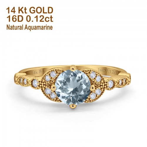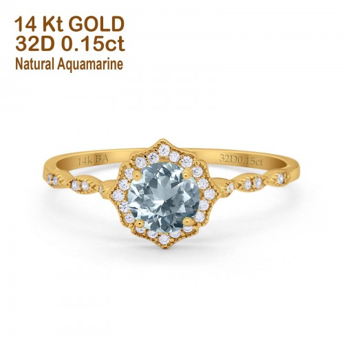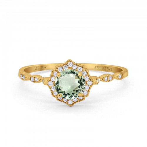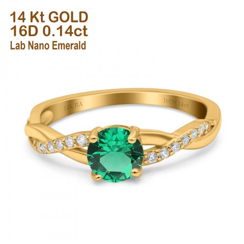 14K Yellow Gold 0.98ct Round Art Deco 6mm G SI Nano Emerald Diamond Engagement Wedding Ring Size 6.5
