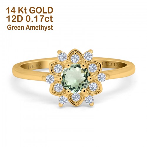 14K Yellow Gold 1.01ct Round 6mm G SI Natural Amethyst Diamond Engagement Wedding Ring Size 6.5