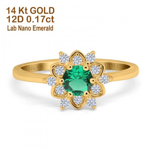 14K Yellow Gold 1.01ct Round 6mm G SI Nano Emerald Diamond Engagement Wedding Ring Size 6.5