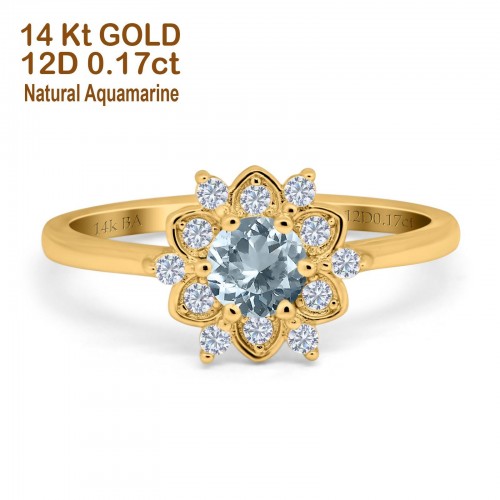 14K Yellow Gold 1.01ct Round 6mm G SI Natural Aquamarine Diamond Engagement Wedding Ring Size 6.5