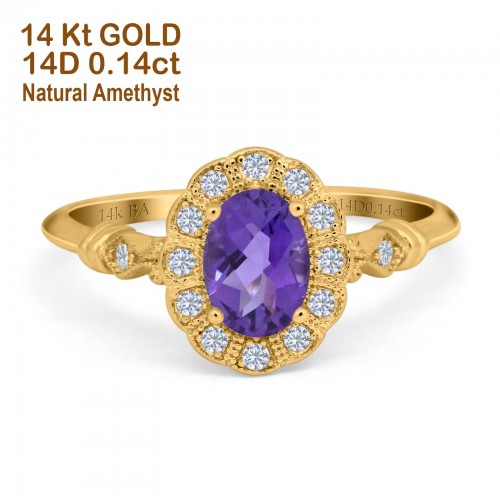 14K Yellow Gold 0.9ct Oval 7mmx5mm G SI Natural Amethyst Diamond Engagement Wedding Ring Size 6.5