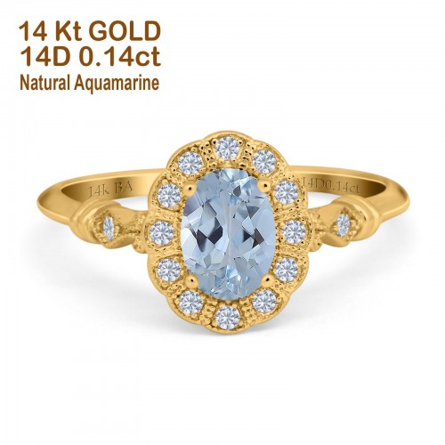 14K Yellow Gold 0.9ct Oval 7mmx5mm G SI Natural Aquamarine Diamond Engagement Wedding Ring Size 6.5