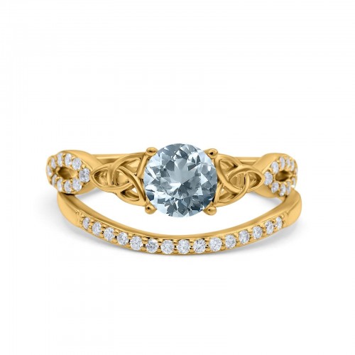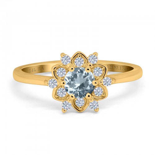 14K Yellow Gold 1.01ct Round 6mm G SI Natural Aquamarine Diamond Engagement Wedding Ring Size 6.5