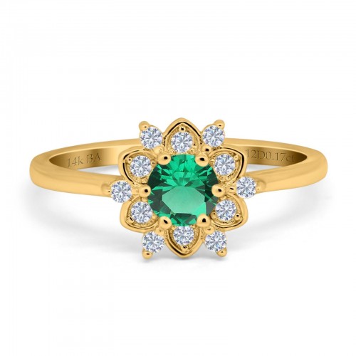 14K Yellow Gold 1.01ct Round 6mm G SI Nano Emerald Diamond Engagement Wedding Ring Size 6.5
