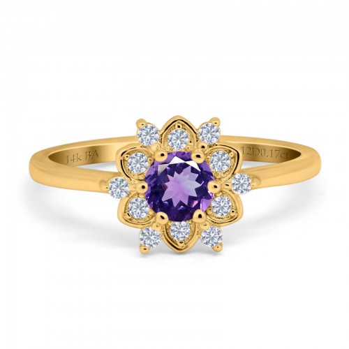 14K Yellow Gold 1.01ct Round 6mm G SI Natural Amethyst Diamond Engagement Wedding Ring Size 6.5