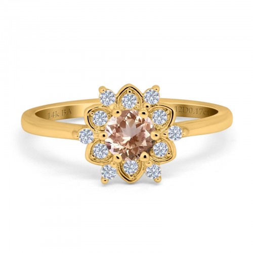14K Yellow Gold 1.01ct Round 6mm G SI Natural Morganite Diamond Engagement Wedding Ring Size 6.5