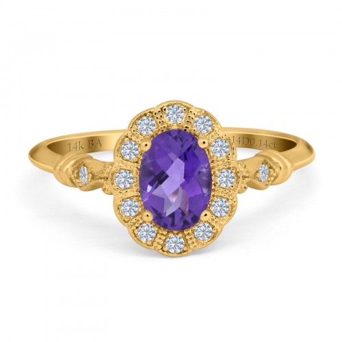 14K Yellow Gold 0.9ct Oval 7mmx5mm G SI Natural Amethyst Diamond Engagement Wedding Ring Size 6.5