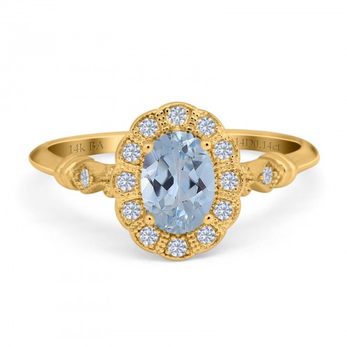 14K Yellow Gold 0.9ct Oval 7mmx5mm G SI Natural Aquamarine Diamond Engagement Wedding Ring Size 6.5