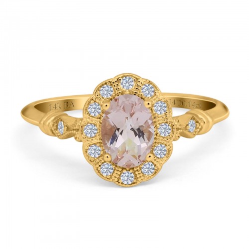 14K Yellow Gold 0.9ct Oval 7mmx5mm G SI Natural Morganite Diamond Engagement Wedding Ring Size 6.5
