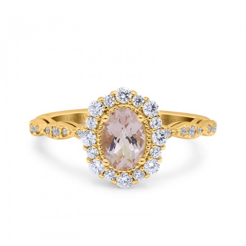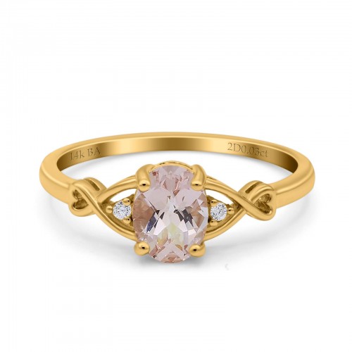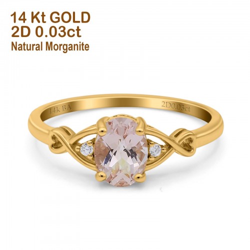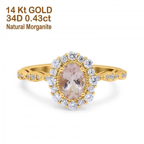 14K Yellow Gold 1.16ct Round 6.5mm G SI Natural Morganite Diamond Engagement Wedding Ring Size 6.5