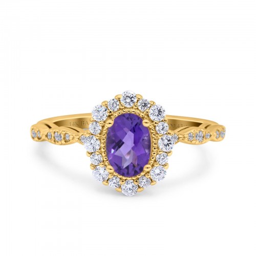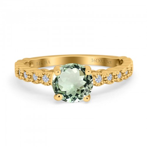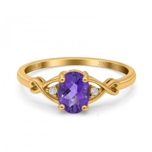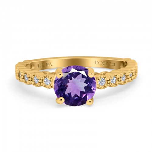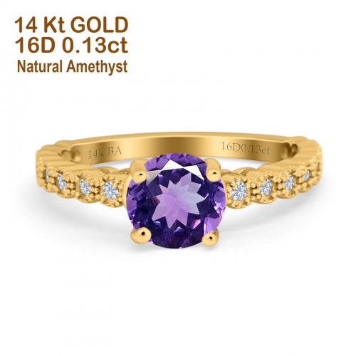 14K Yellow Gold 1.16ct Round 6.5mm G SI Natural Amethyst Diamond Engagement Wedding Ring Size 6.5