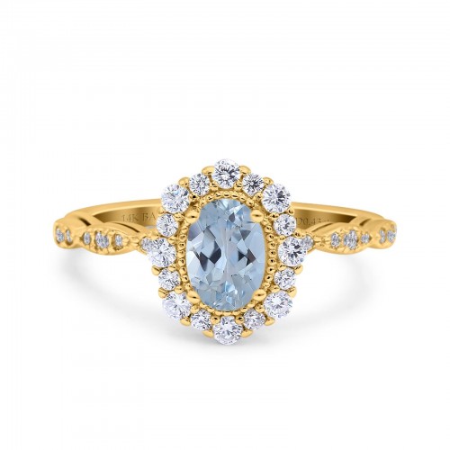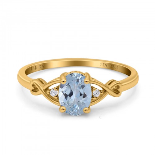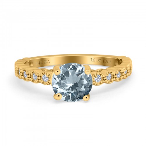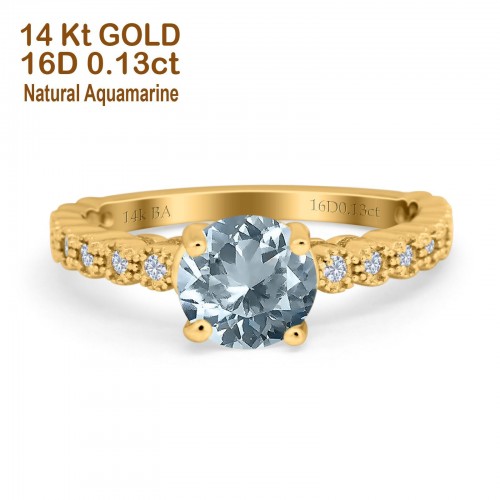 14K Yellow Gold 1.16ct Round 6.5mm G SI Natural Aquamarine Diamond Engagement Wedding Ring Size 6.5