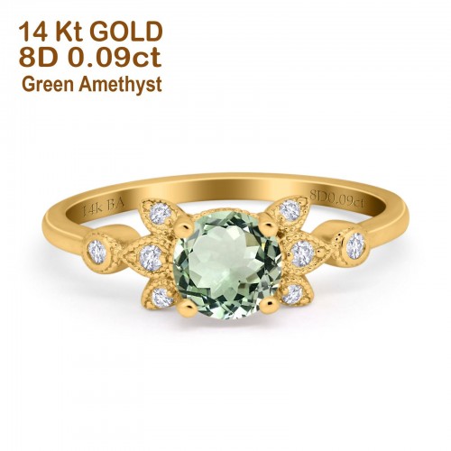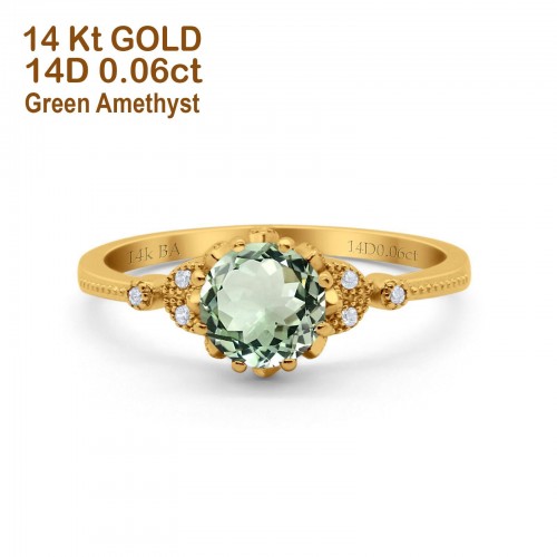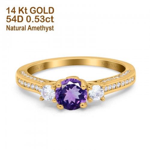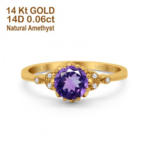 14K Yellow Gold 1.37ct Round 7mm G SI Natural Amethyst Diamond Engagement Wedding Ring Size 6.5