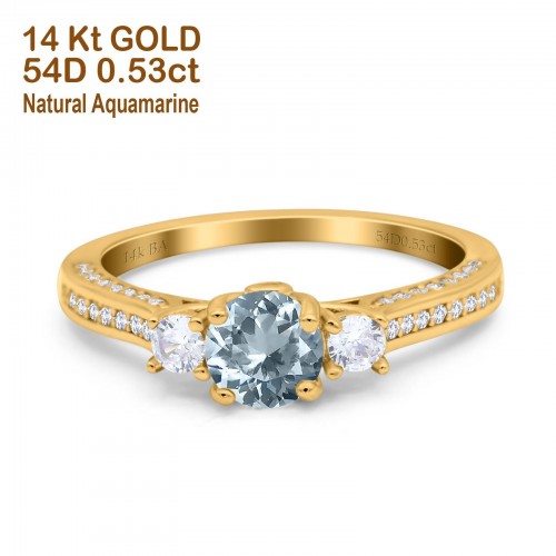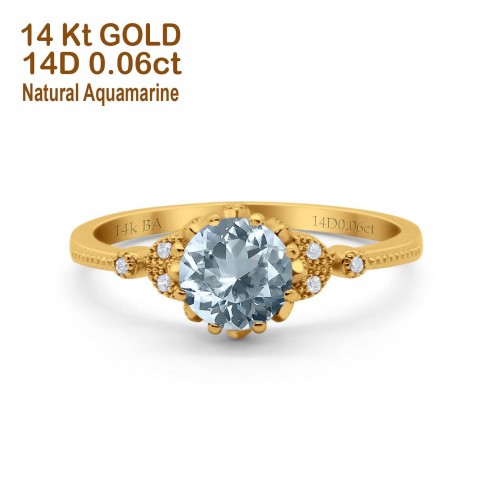 14K Yellow Gold 1.37ct Round 7mm G SI Natural Aquamarine Diamond Engagement Wedding Ring Size 6.5