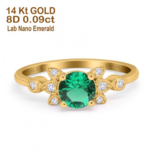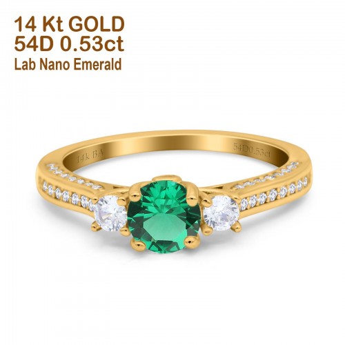 14K Yellow Gold 1.37ct Round 7mm G SI Nano Emerald Diamond Engagement Wedding Ring Size 6.5