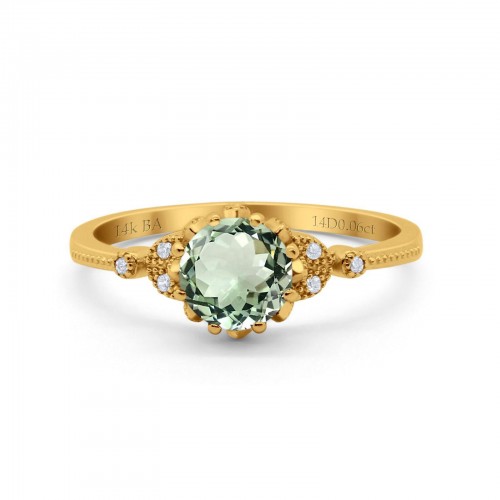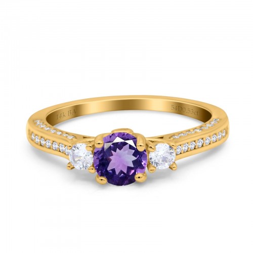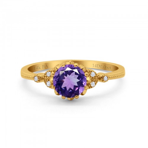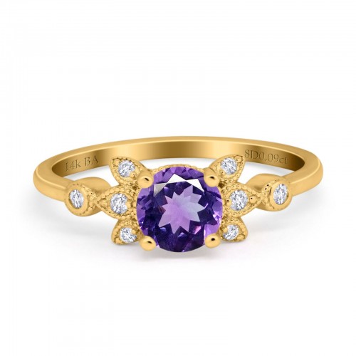 14K Yellow Gold 1.37ct Round 7mm G SI Natural Amethyst Diamond Engagement Wedding Ring Size 6.5