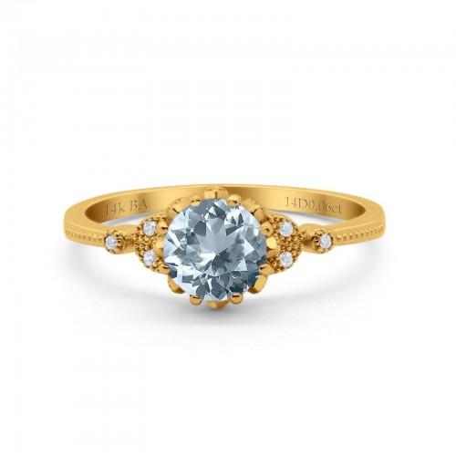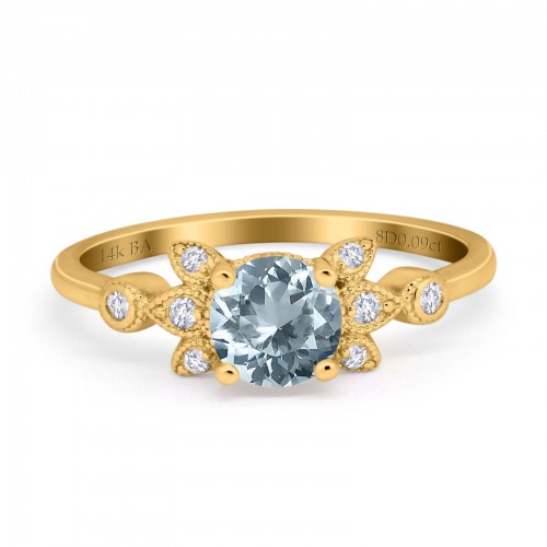 14K Yellow Gold 1.37ct Round 7mm G SI Natural Aquamarine Diamond Engagement Wedding Ring Size 6.5