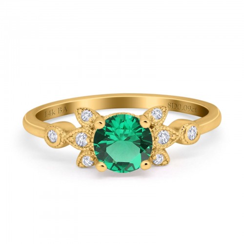 14K Yellow Gold 1.37ct Round 7mm G SI Nano Emerald Diamond Engagement Wedding Ring Size 6.5