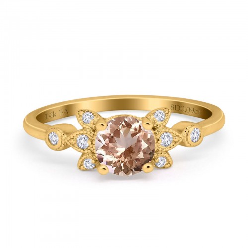 14K Yellow Gold 1.37ct Round 7mm G SI Natural Morganite Diamond Engagement Wedding Ring Size 6.5