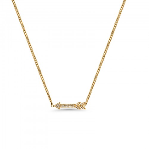 14K Yellow Gold Diamond Arrow .09ct Pendant Necklace 16″+2″ Ext
