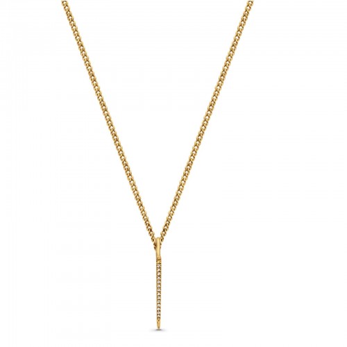 14K Yellow Gold Diamond Bar Necklace .07ct 16+2 Inch Extension