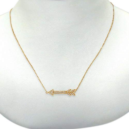 14K Yellow Gold Diamond Arrow .09ct Pendant Necklace 16″+2″ Ext