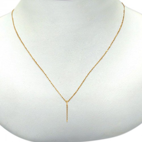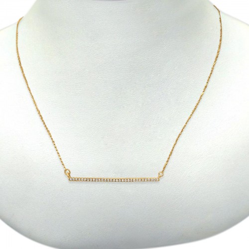 14K Yellow Gold Diamond Bar Necklace .07ct 16+2 Inch Extension