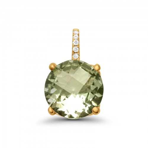 14K Yellow Gold 2.27ct Natural Green Amethyst G SI Diamond Pendant .5″