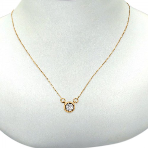 14K Yellow Gold Round Diamond .04ct Solitaire Pendant Necklace 18 Inch