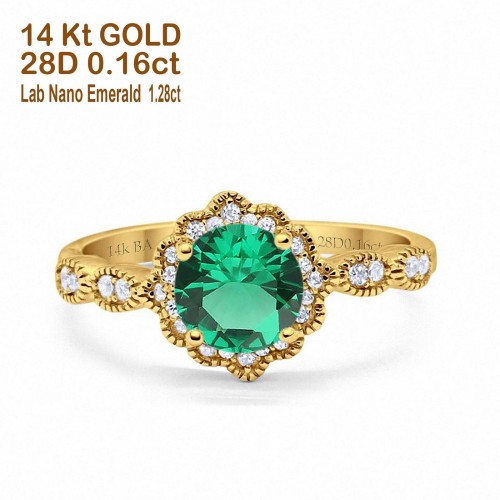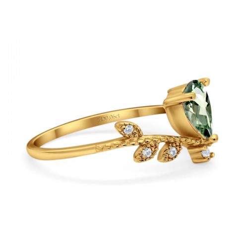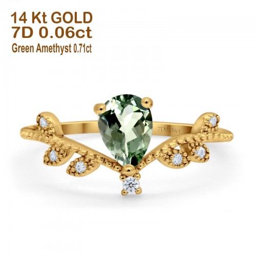 14K Yellow Gold Pear Natural Green Amethyst 0.77ct G SI Diamond Engagement Ring Size 6.5