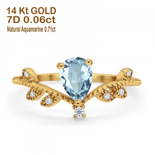 14K Yellow Gold Pear Natural Aquamarine 0.77ct G SI Diamond Engagement Ring Size 6.5